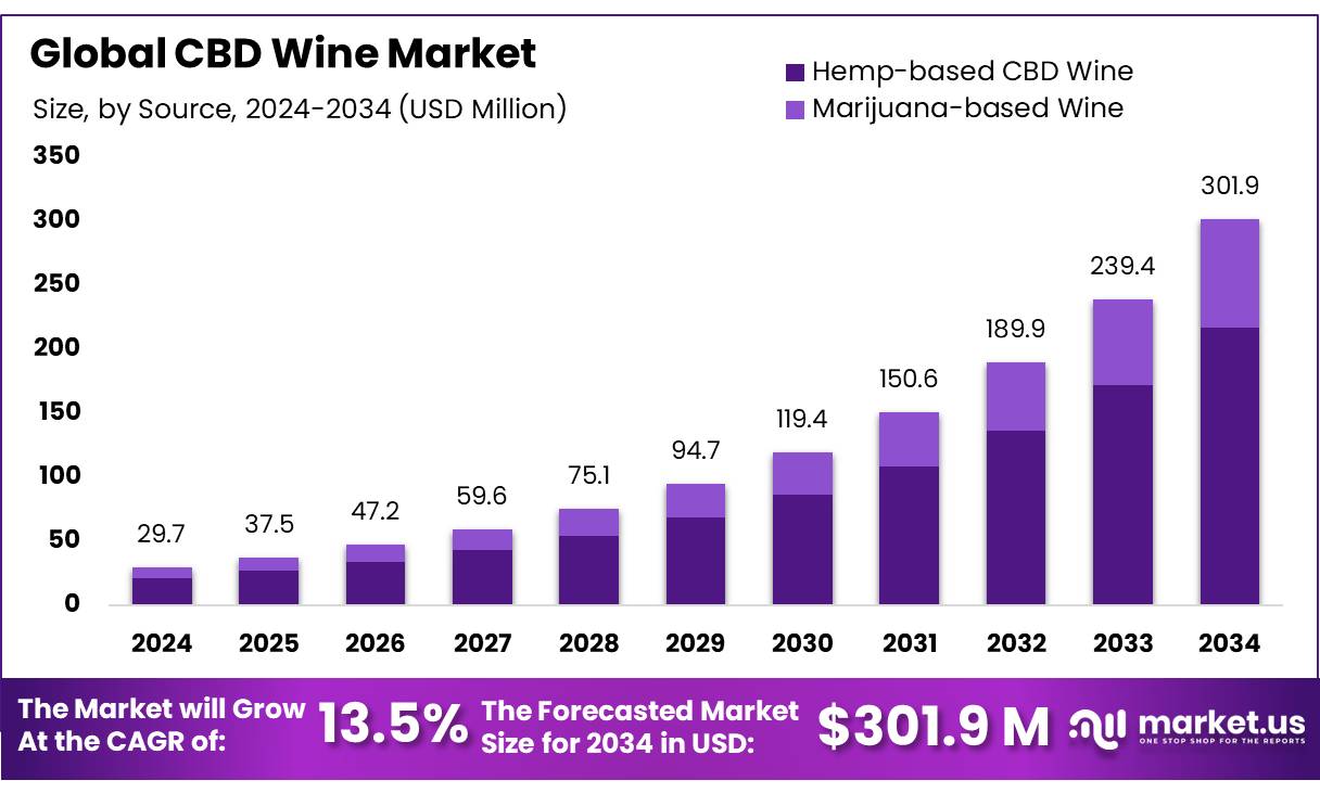 [#item_full_content] CBD Wine Market size is expected to be worth around USD 301.7 Million by 2034, from USD 29.7 Million in 2024, at a CAGR of 13.5%