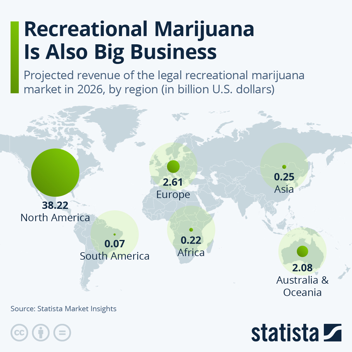 [#item_full_content] This infographic shows the projected revenue of the legal recreational marijuana market in 2026 in selected regions, in billion U.S. dollars.  Read More