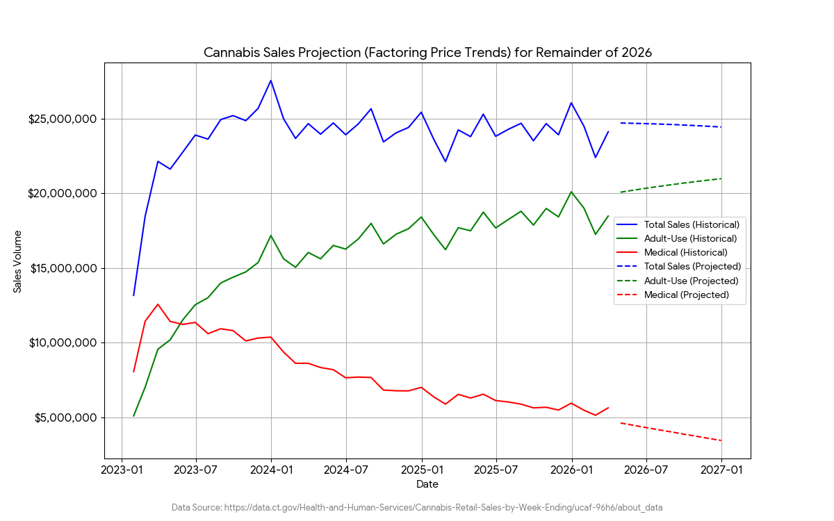 [#item_full_content] A stark market reality has set in for Connecticut’s legal cannabis industry: growth has stalled, and total revenue is stabilizing far below what was originally envisioned. Looking at the sales